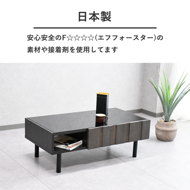 【新品アウトレット商品】 国産 センターテーブル 105cm アカシア無垢 強化ガラス OK11A