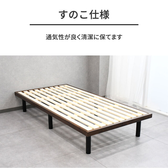 特徴 | パイン材を使用したシンプルでスタイリッシュなシングルベッド。ポケットコイルマットレス付き。 |