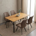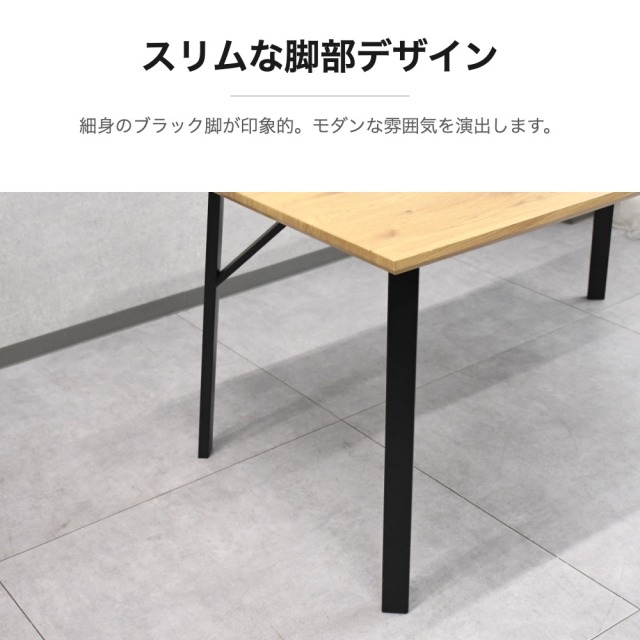 特徴 | リアルな木目シートで、高級感があるオーク調のダイニングセットです。スリムなブラック脚が印象的で、モダンな雰囲気を演出します。チェアはクッション性が高く、長時間の使用でも快適な座り心地を提供します。 |