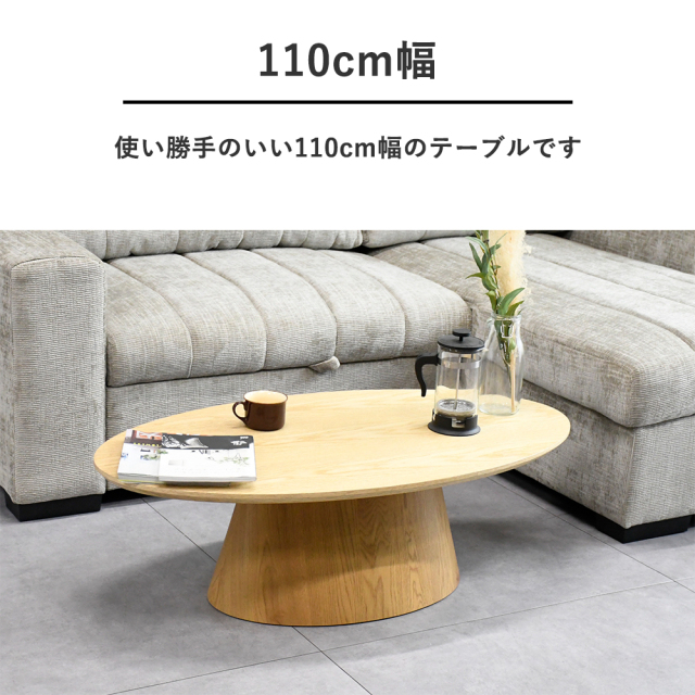 特徴 | オーク材を使用したお洒落な楕円型センターテーブルです。 |