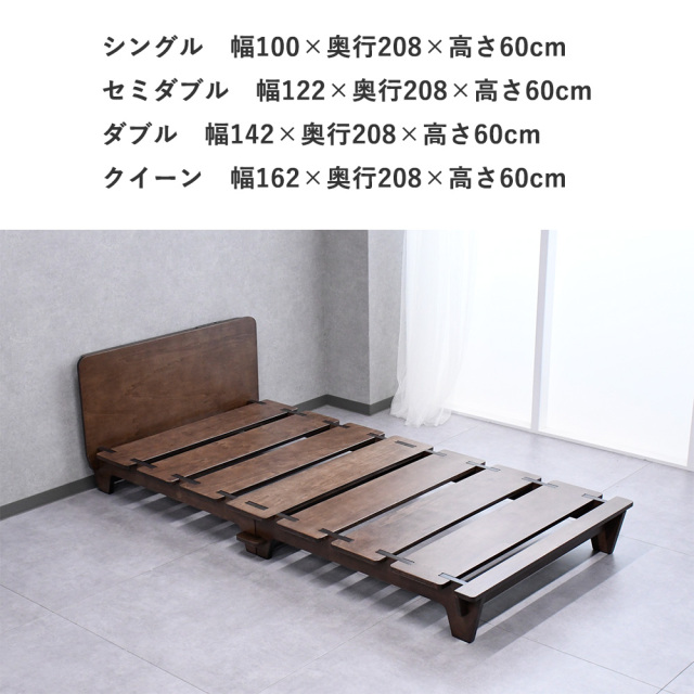 面倒な組み立ては一切不要。 パーツを差し込むだけで、最速10分で完了するはめ式すのこベッド。 工具もボルトも使わない設計ながら、しっかりとした安定感と耐久性を両立。 ロースタイルで空間に圧迫感を与えず、モダンなインテリアにマッチ。 通気性に優れたすのこ構造で、湿気がこもりにくい快適な眠りをサポートします。 シングル 幅1000×奥行2080×高さ600mm セミダブル 幅1220×奥行2080×高さ600mm ダブル 幅1420×奥行2080×高さ600mm クイーン 幅1620×奥行2080×高さ600mm |