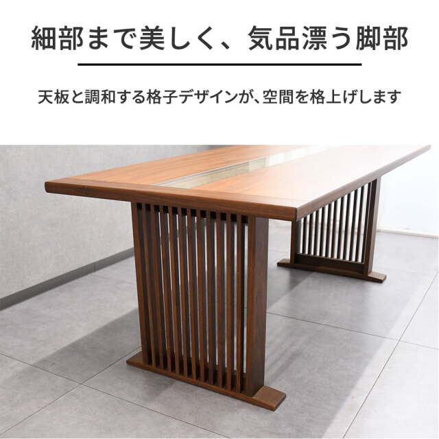 特徴 | 180cmウォールナット無垢材の【和】なデザインのダイニングテーブルです。高級感・雰囲気ともに抜群です。 |